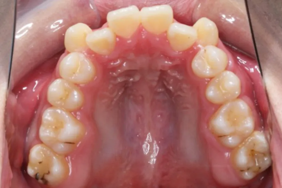表側矯正 ガタガタ前歯の噛み合わが逆矯正治療 2025.11.01 ガタガタ、前歯のかみ合わせが逆 before after 担当医 西村 先生 主訴 ガタガタ、前歯のかみ合わせが逆 期間 1年7ヵ月 費用 ¥990,000(税込) 治療内容 表側ワイヤー矯正 治療に伴うリスク 歯髄壊死、歯根吸収、歯肉退縮、ブラックトライアングルなど 関連症例