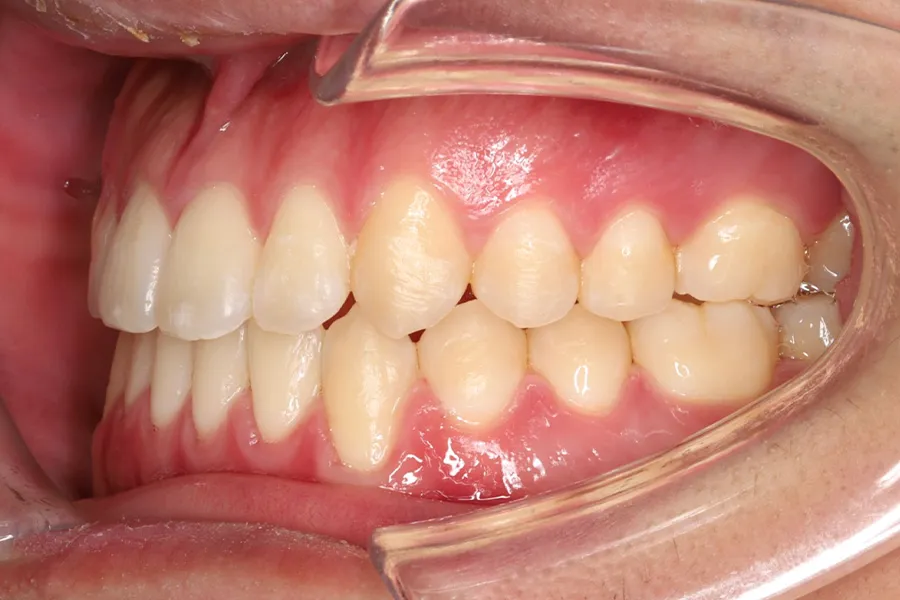 表側ワイヤー矯正表側矯正 20代モノが噛めない男性非抜歯 2026.01.21 【20代男性】前歯でモノが噛めない Before After 担当医 西村先生 主訴 前歯でモノが噛めない 期間 1年3か月 費用 ¥900,000円 (税込 ¥990,000円) 治療内容 ・非抜歯 ・表側ワイヤー矯正 治療に伴うリスク 歯髄壊死、歯根吸収、歯肉退縮、ブラックトライアングル 関連症例