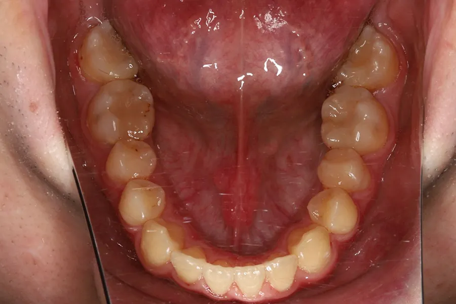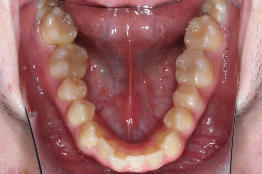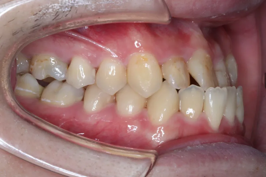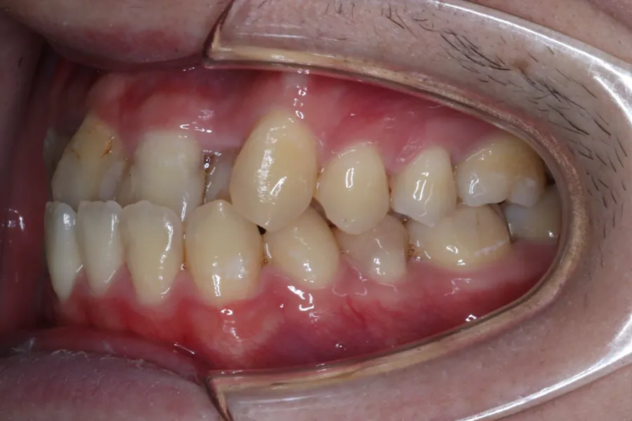 ハーフリンガル矯正 20代ガタガタを治したい受け口を治したい男性非抜歯 2026.01.21 【20代男性】受け口を治したい・ガタガタを治したい Before After 担当医 西村先生 主訴 受け口を治したい・ガタガタを治したい 期間 1年6か月 費用 ¥1,100,000円 (税込 ¥1,210,000円) 治療内容 ・非抜歯 ・ハーフリンガル矯正 治療に伴うリスク 歯髄壊死、歯根吸収、歯肉退縮、ブラックトライアングル 関連症例