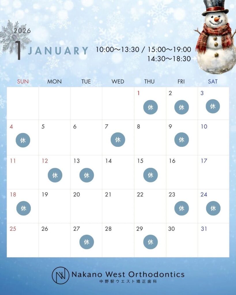 2026年1月の診療日と休診日は下記のカレンダー通りとなります。