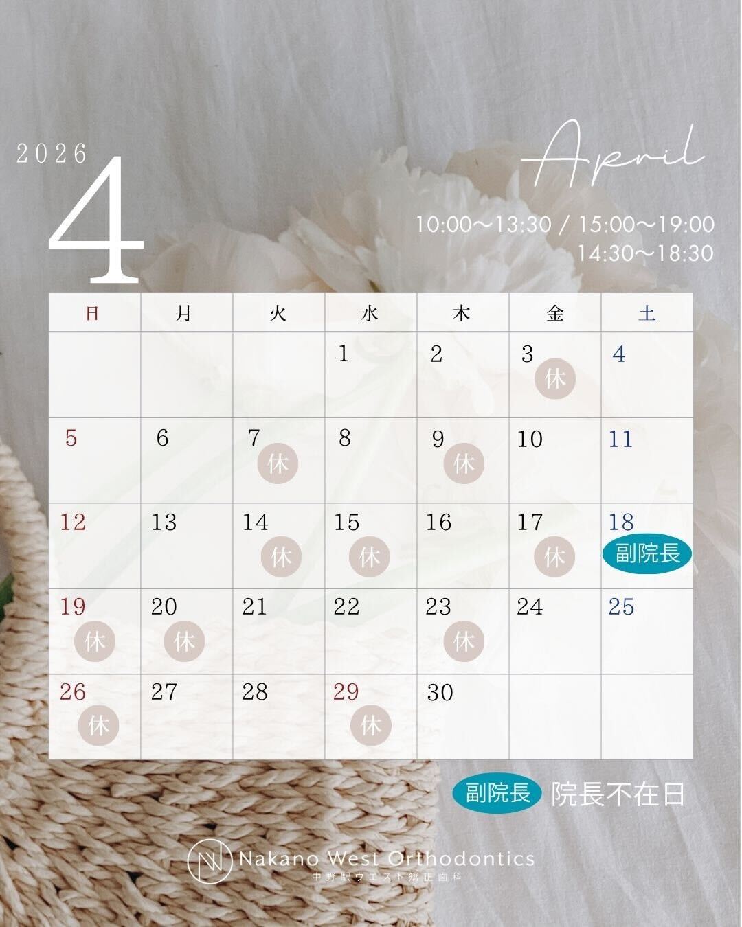 2026年3月の診療日と休診日は下記のカレンダー通りとなります。