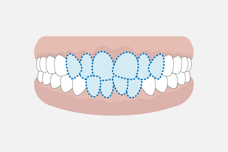 段階ごとに形の異なるマウスピースを交換しながら、少しずつ歯を理想的な位置へと動かしていきます。